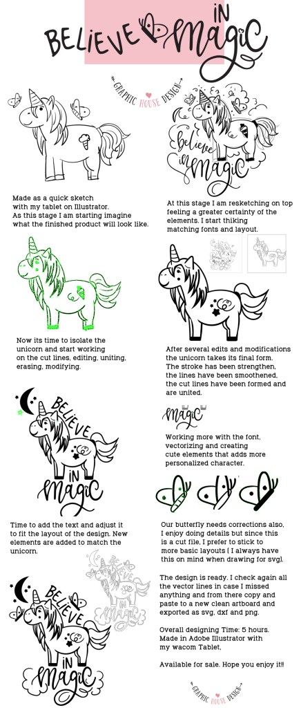 Want to see a bit of my creating process? It can really go a long way, but in short here is a sample: creating and editing this lovely unicorn, unifying the cut lines, cleaning, erasing and make all things necessary for a unique and clean cut file.
