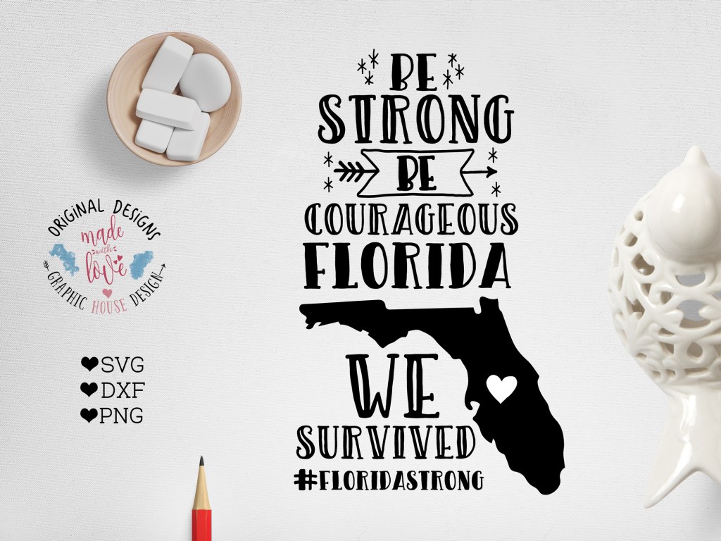 Sharing the worry and best wishes for a fast recovery you can use our Florida Be Strong, Be Courageous Cut File available in SVG, DXF and PNG to create your own fund-raising campaigns for the relief of the ones who lost their homes and jobs.