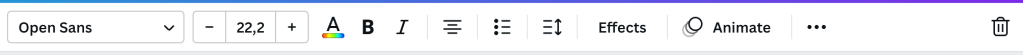 To add an element to your design just drag it on your document and depending its properties canva top bar will show you options to futher customize it.