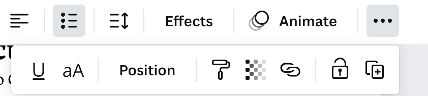 From the top bar, you can adjust the fonts, the font size, color of text and also change the alignment and the spacing. Select the … bullet sign to see more options such as fixing the position, transparency, and creating a link for web pages.