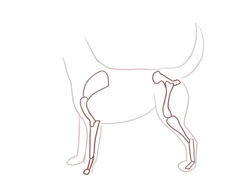 Here we don’t see the pelvis or we hardly see it at the left dog but that doesn’t mean it isn’t there. Here is where anatomy comes in.