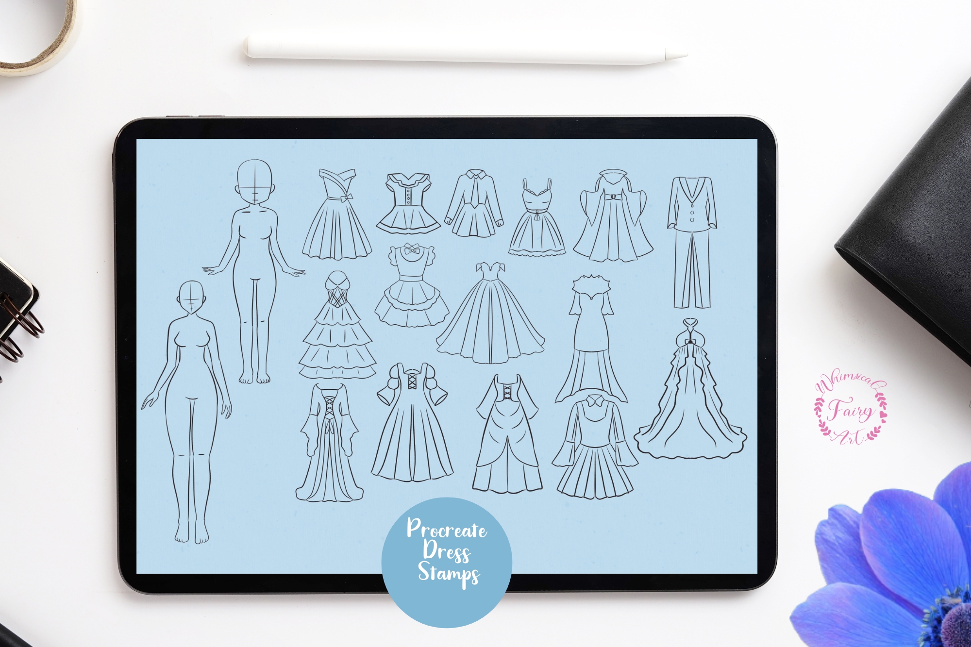 Free Procreate Brushes – 20 Dresses Stamps – Contains Body Figures
