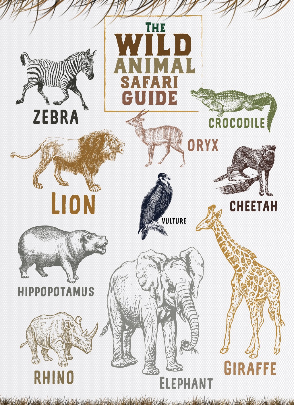 Free Safari animals printable awesome decoration for wild animal lovers, dimensions: 8X10 inches.