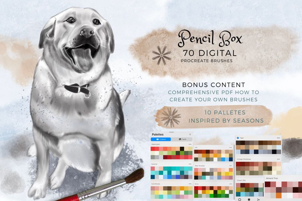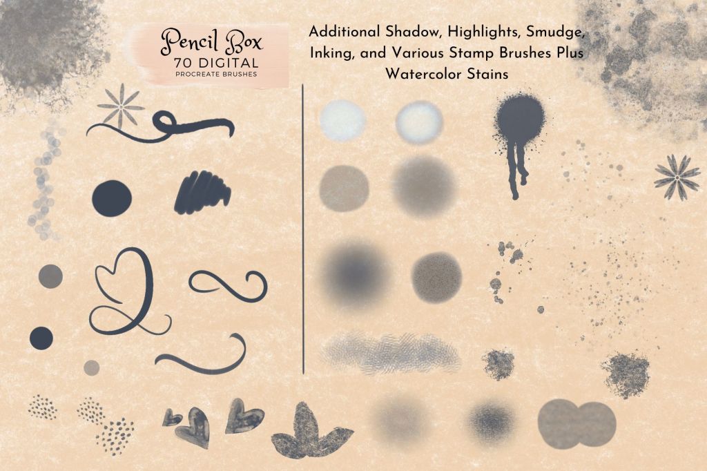 - Contains 70 Brushes for Procreate